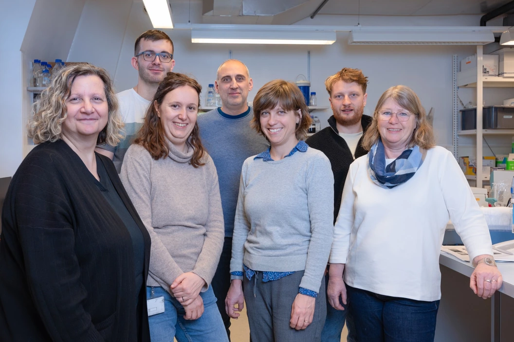 Photo (de g. à dr.) : Pre Angela Ciuffi, Gregory Mathez, Sara Cristinelli, Pr Jérôme Gouttenoire, Pre Valeria Cagno, Paul Lachat et Carole Kebbi Beghdadi.