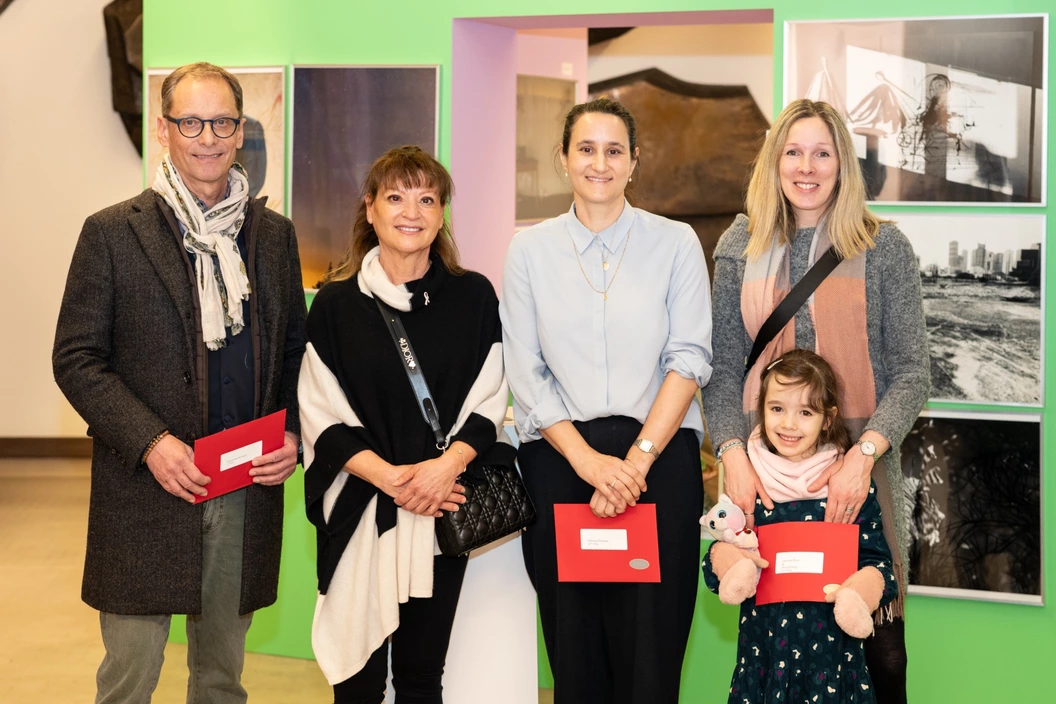 Remise des prix, en présence des artistes, des chargées du programme VU.CH, l’art à l’hôpital et de la Directrice du CHUV, Claire Charmet.