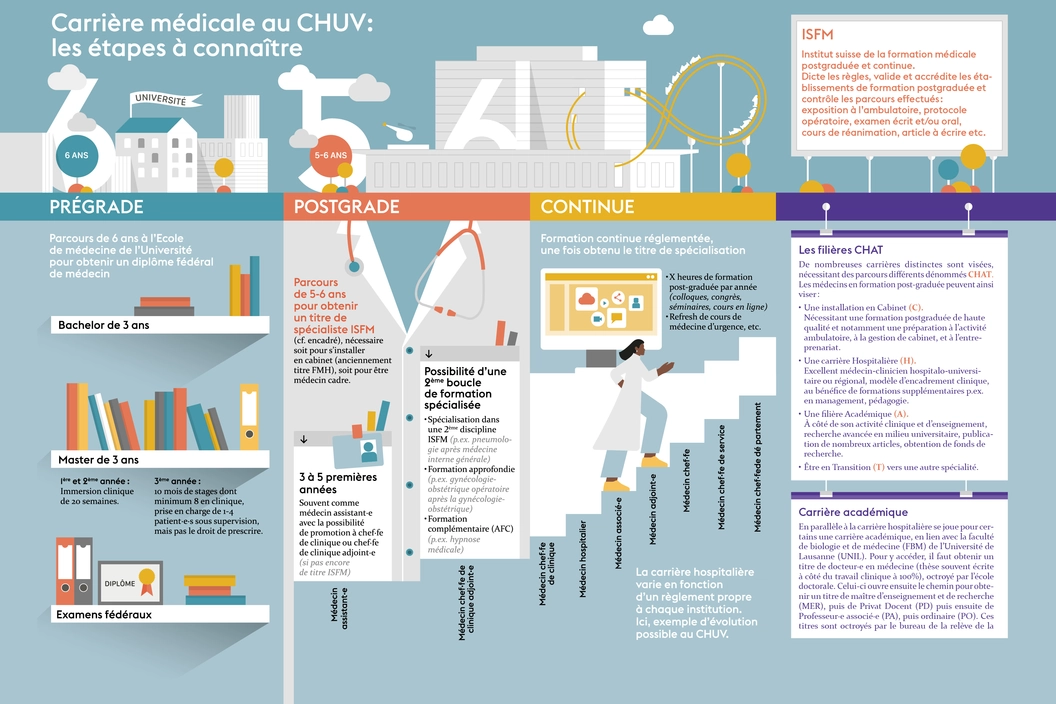 Au CHUV, les offres de formation sont développées par les services ou elles sont organisées en collaboration avec les sociétés de disciplines médicales, en conformité avec les règlements de l’ISFM.