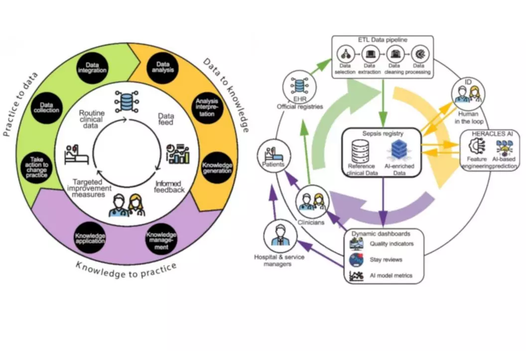 Les équipes du Pr Jean Louis Raisaro (Centre de la science des données biomédicales) et du Dr Sylvain Meylan (Service des maladies infectieuses), en étroite collaboration avec le Swiss Data Science Center, ont développé un Système clinique d'amélioration continue (en anglais “Learning Health System”) basé sur l’IA afin de soutenir la détection du sepsis et d’améliorer la prise en charge des patients (programme de qualité de soin sepsis).