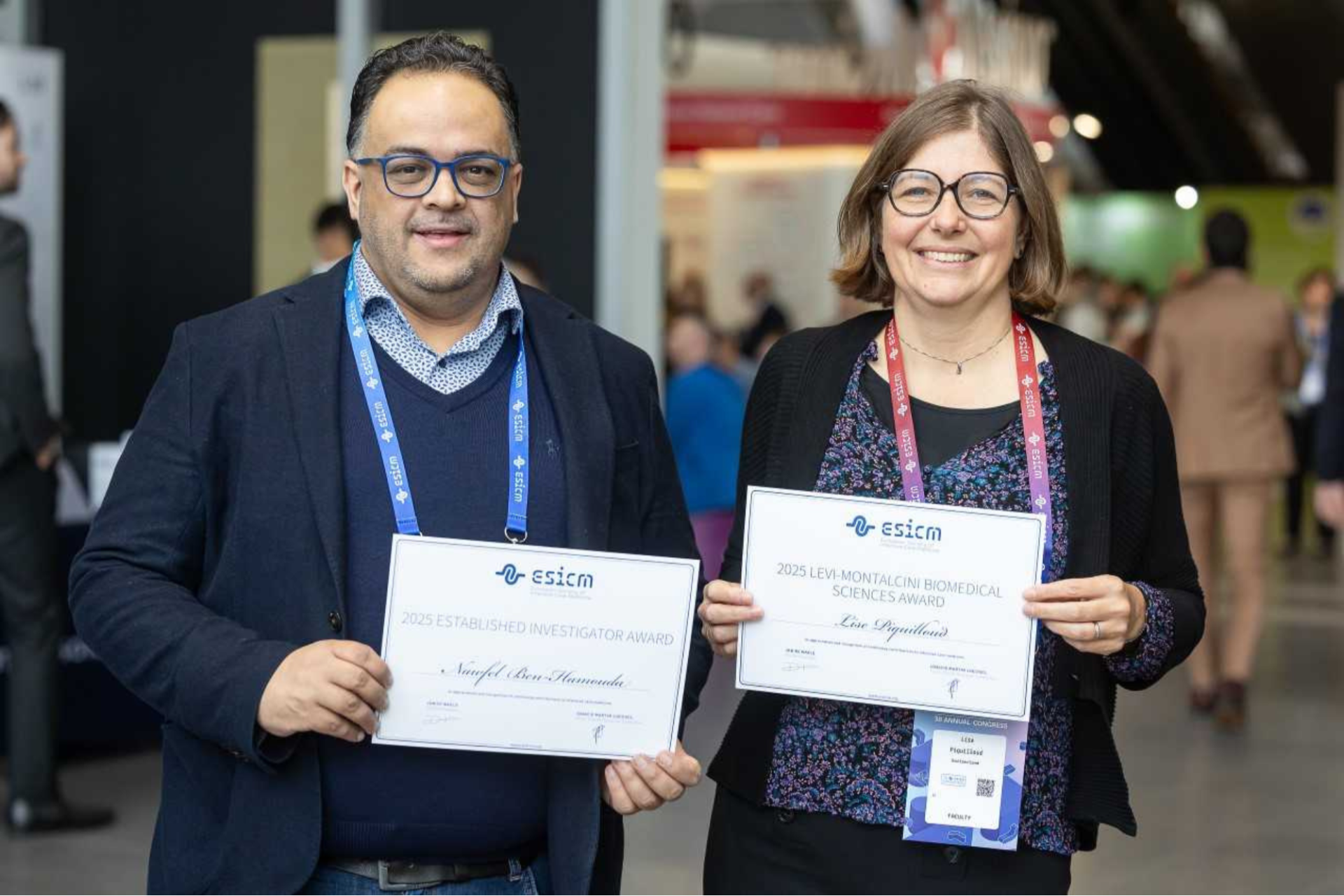Le Dr Nawfel Ben Hamouda PD-MER a obtenu the ESICM Established Investigator Award pour son projet PET-PREDICT. Et la Dre Lise Piquilloud PD-MER a obtenu the ESICM Levi-Montalcini Biomedical Sciences Award pour le projet SWITCH-SAFE.