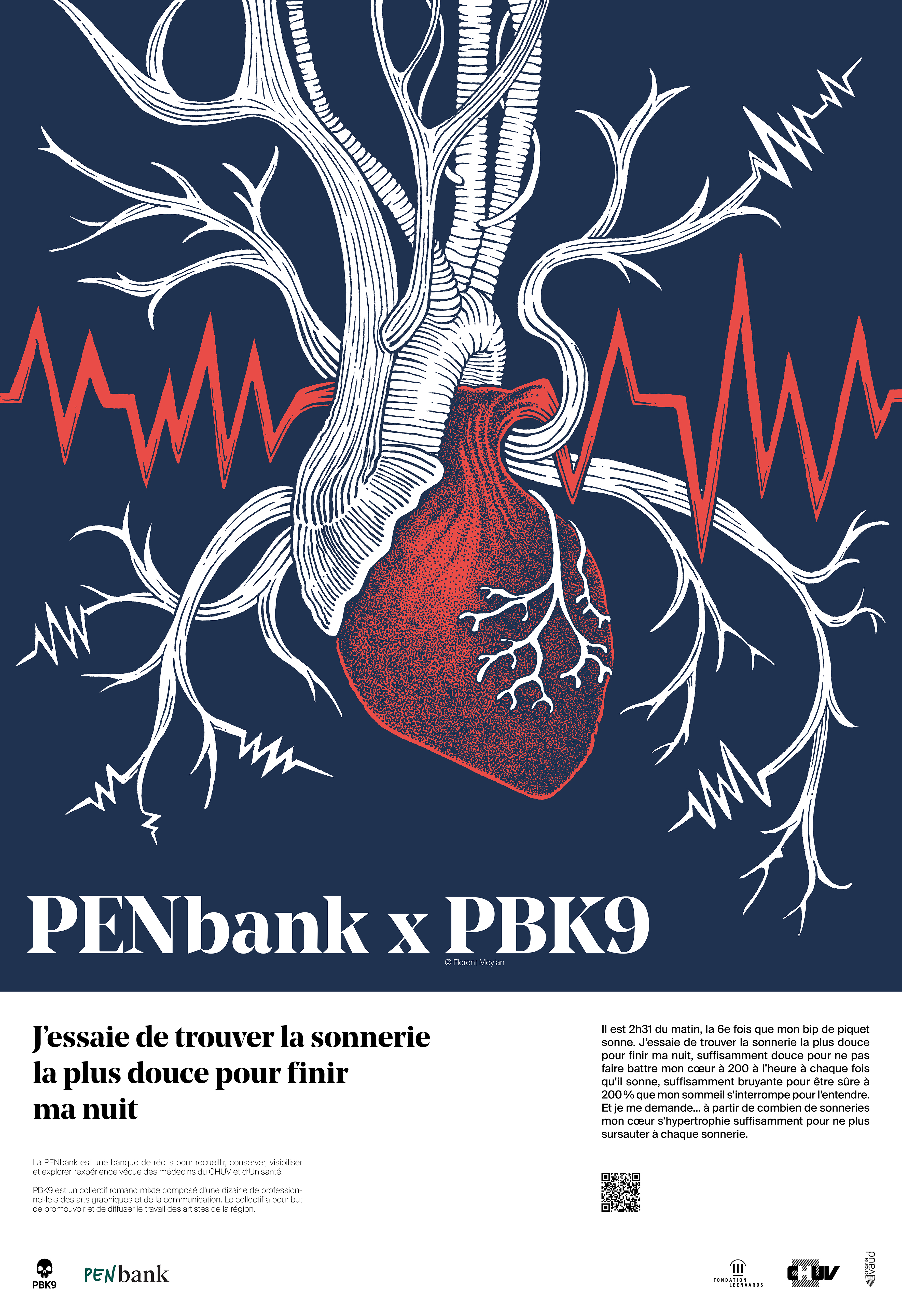 En septembre 2024, la PENbank a affiché quatre récits d’expérience de médecins du CHUV et d’Unisanté au centre-ville de Lausanne. Cette campagne est le fruit d’une collaboration avec quatre membres du collectif PBK9.