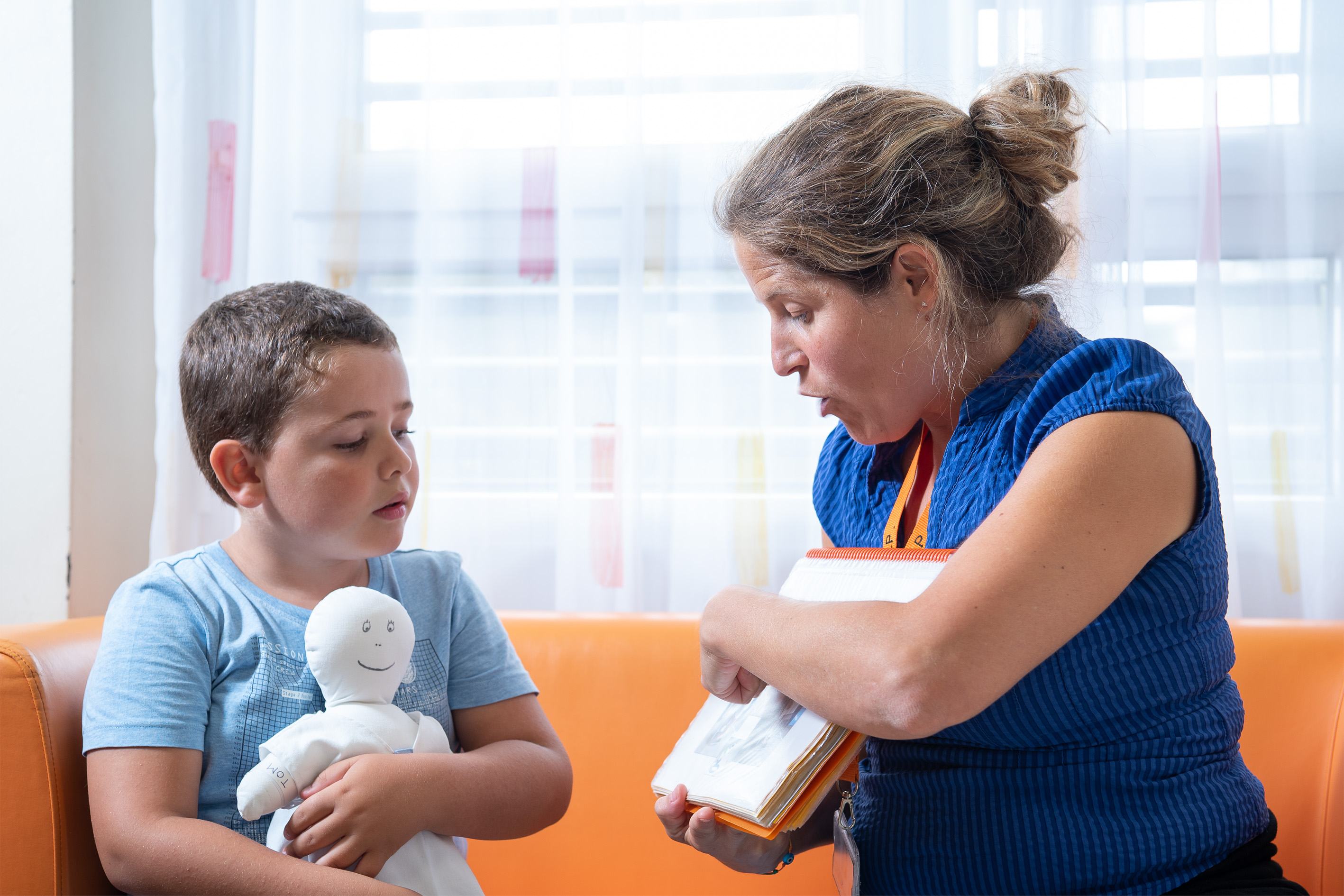 Pendant environ 40 minutes, nous proposons une rencontre pour familiariser l'enfant avec les lieux et ce qu’il va devoir vivre. L’enfant découvre toutes les étapes de son séjour dans un album de photos, puis peut voir, toucher et essayer le matériel que le personnel soignant utilisera.