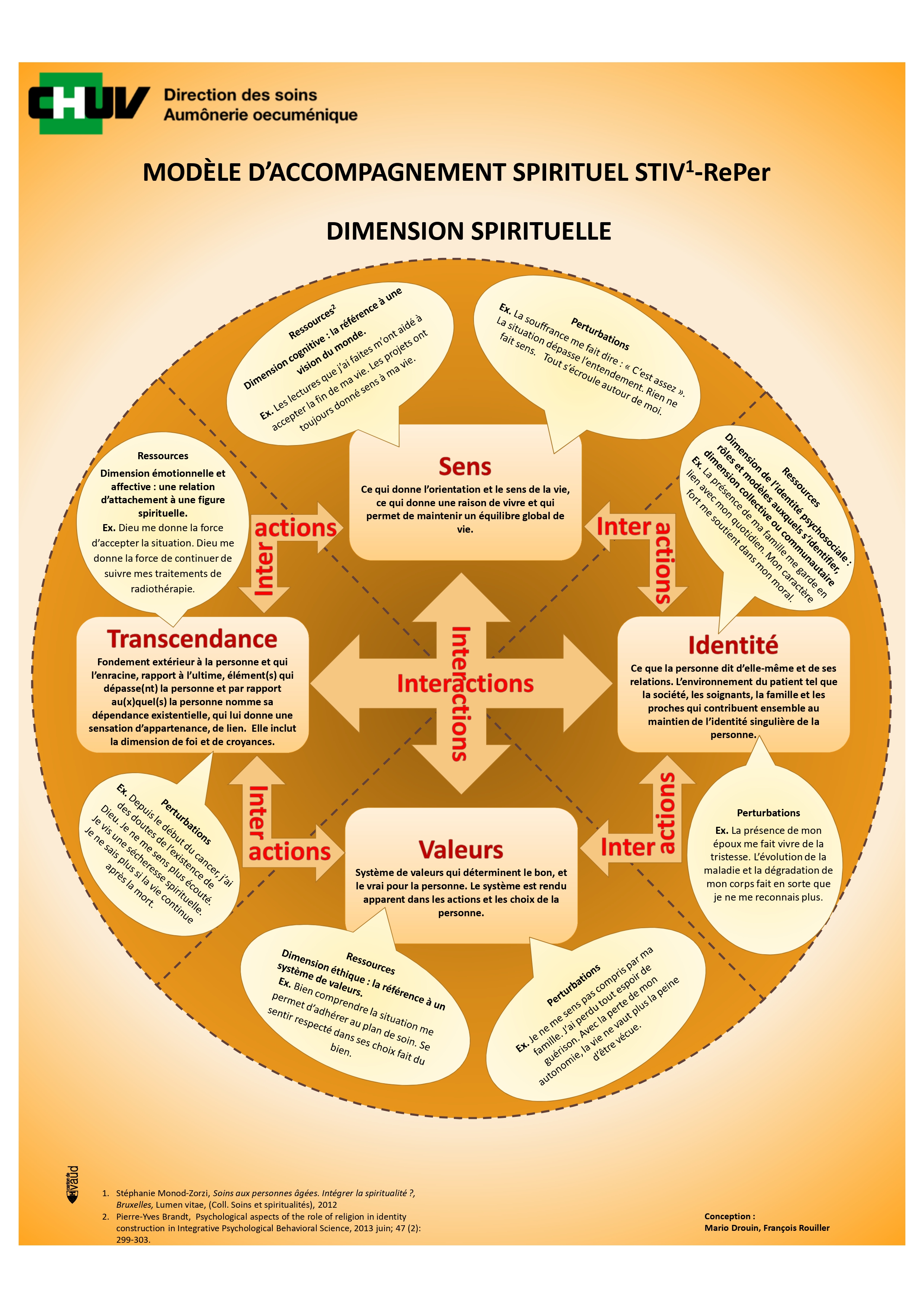 - Mettre à jour et rehausser les compétences et les pratiques des accompagnants-es spirituels-les, des superviseurs-es et du personnel soignant du CHUV en favorisant une vision, une pratique et un langage commun du spirituel.