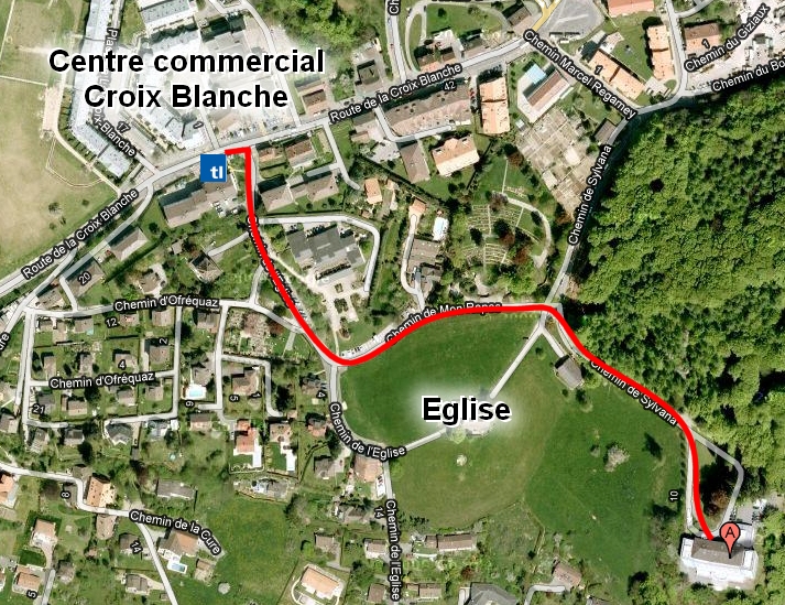 A 10 minutes à pied depuis l'arrêt de bus: depuis Lausanne, prendre le métro M2 jusqu'à Croisettes, puis les bus 45 ou 46 jusqu'à Epalinges (Croix Blanche).