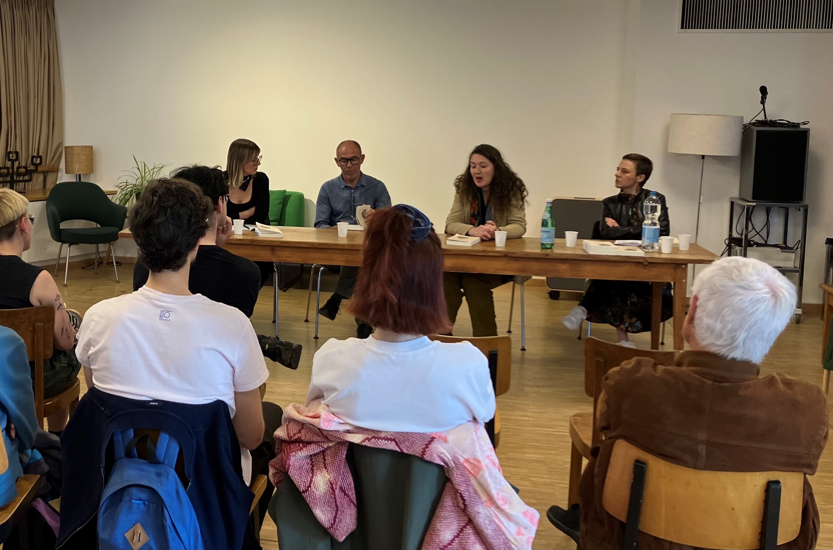 Émilie Bovet, chercheuse et maître d’enseignement, Haute École de Santé Vaud (HESAV), Jon Monnard, écrivain et animateur d’un atelier d’écriture, hôpital de Cery, Mikhaël Moreau, doctorant, Institut des humanités en médecine (CHUV-UNIL), Barbara Steck, pédopsychiatre et privat-docent, Université de Bâle