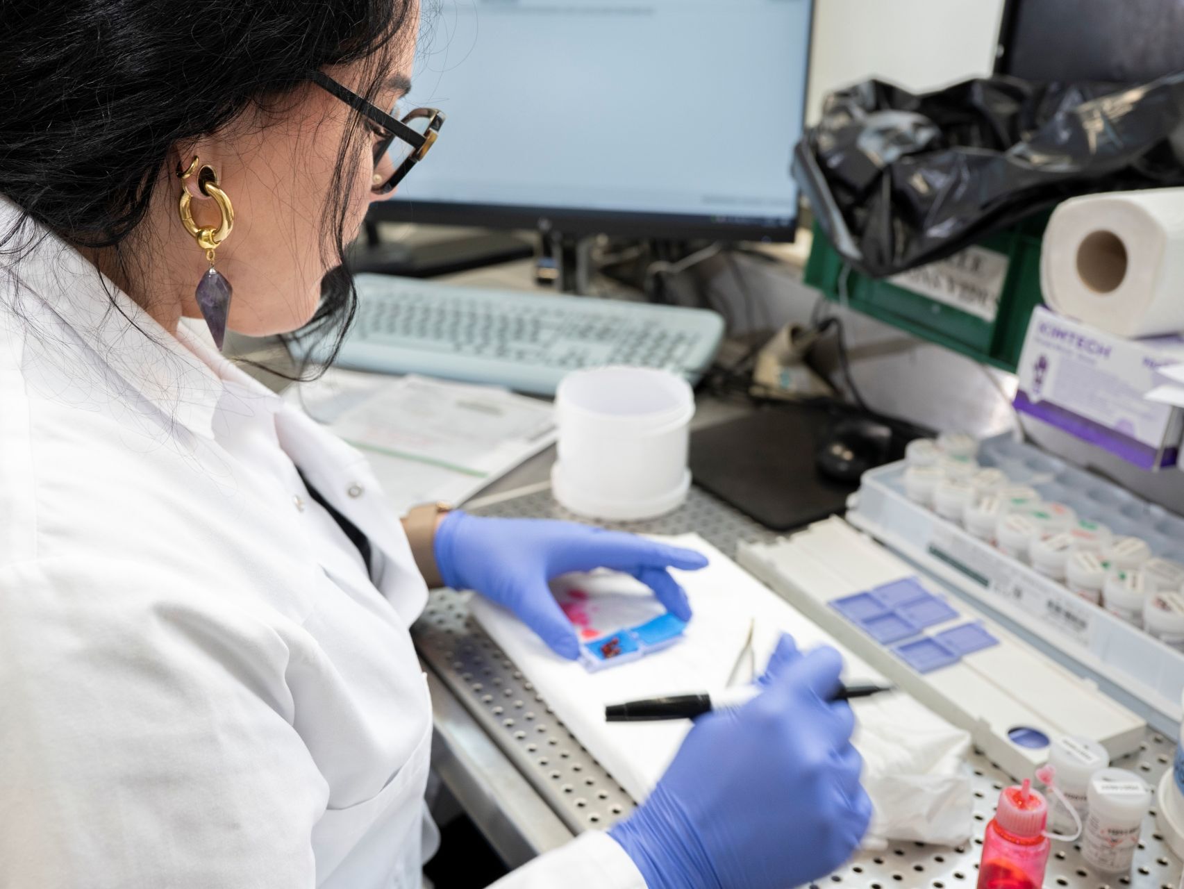Pour donner un ordre de grandeur, nous traitons plus de 22’000 dossiers par an en histologie et plus de 12’000 en cytologie. Sur le plan technique, cela représente environ 120’000 blocs de paraffine, 380’000 lames, plus de 25’000 colorations spéciales et environ 70’000 immunohistochimies chaque année. La majorité de cette activité concerne le CHUV, avec environ 15% provenant de l’extérieur, notamment pour des analyses spécialisées ou des sollicitations de second avis.
