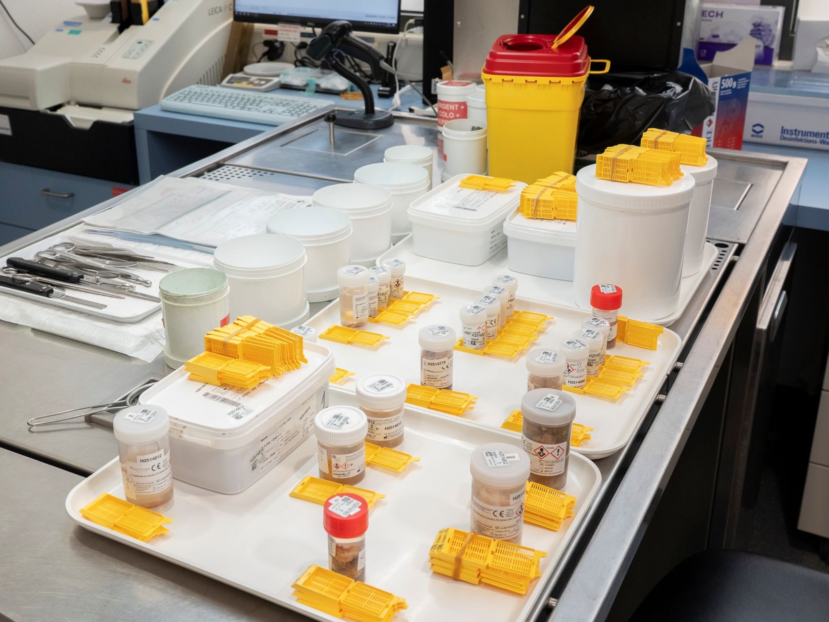 L’ensemble des lames et des blocs sont archivés. Il y a d’abord des obligations réglementaires, avec une conservation sur plusieurs décennies, environ 20 à 25 ans pour les adultes et davantage pour les enfants. Mais au fond, c’est surtout essentiel sur le plan médical, parce qu’un-e patient-e peut présenter une récidive, nécessiter une relecture. Des nouvelles questions peuvent aussi se poser ou une nouvelle possibilité d’investigation se développer et être utile pour le patient concerné ou pour sa famille.