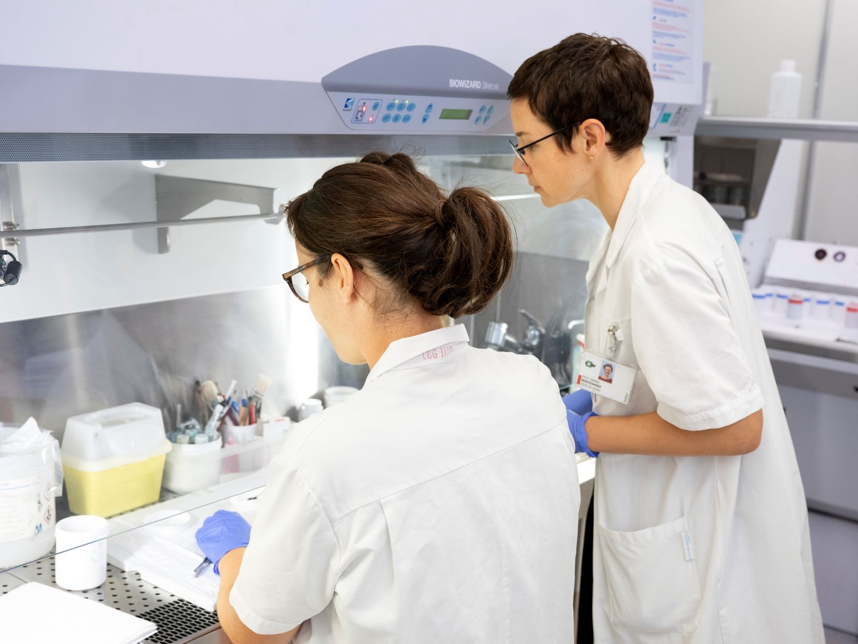 Cette spécialisation se fait surtout en cours d’emploi, avec une courbe d’apprentissage encadrée. La mise au point de nouvelles analyses, notamment les immunomarquages avec de nouveaux anticorps, se fait en collaboration étroite avec les médecins et les scientifiques. En cytopathologie, la préparation des échantillons est généralement moins complexe, mais les technicien-nes sont souvent davantage impliqué-es dans le screening et l’observation microscopique des lames.