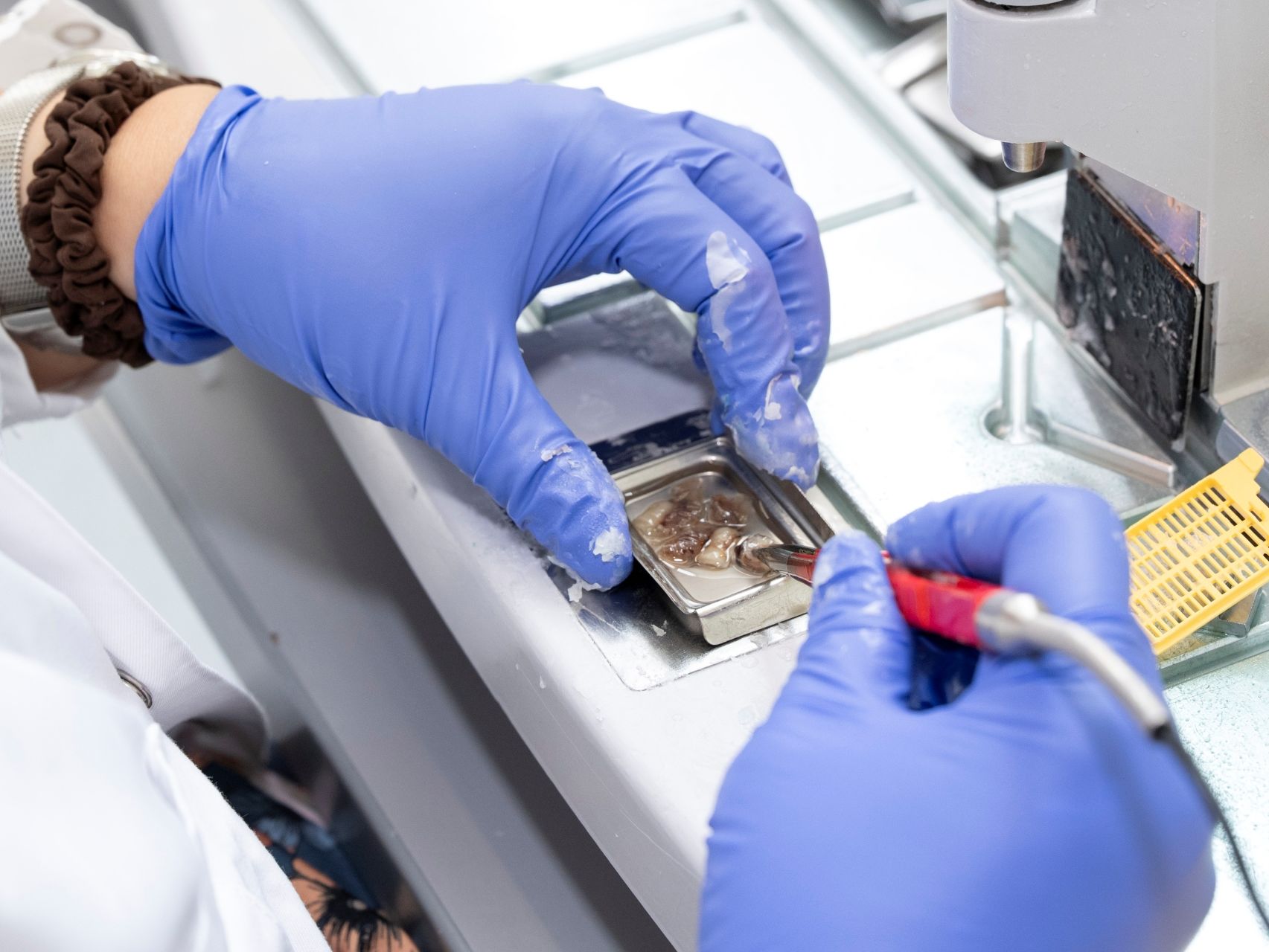 Les TAB en pathologie développent un profil très spécifique, qui se construit au contact de la spécialité. En histologie, ils prennent en charge des prélèvements parfois minuscules. Ils doivent orienter correctement les tissus, réaliser des coupes très fines, contrôler la qualité souvent au microscope, et travailler avec une grande précision, tout en évitant toute contamination d’un cas à l’autre et en préservant au maximum ce matériel précieux.