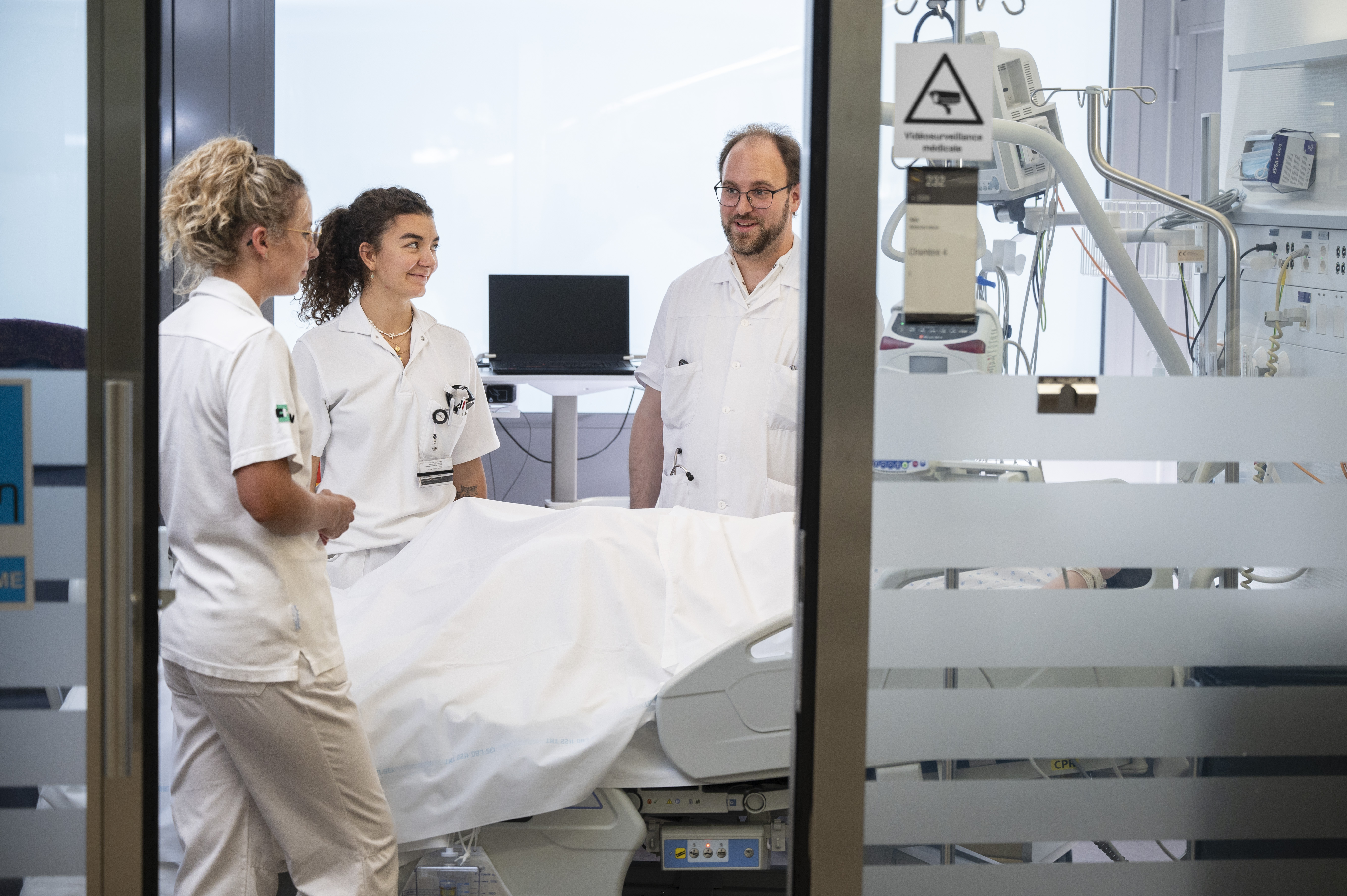 Cette unité de 16 lits accueille les patient-e-s qui ont besoin d'être monitoré-e-s (suivi-e-s) en permanence. Ces derniers sont transféré-e-s en général des urgences ou des soins intensifs. Ils ou elles peuvent aussi être venir d'une autre unité de notre service à la suite d'une décompensation. Cette unité de soins continus est localisée au sud du 17e étage du Bâtiment hospitalier principal.