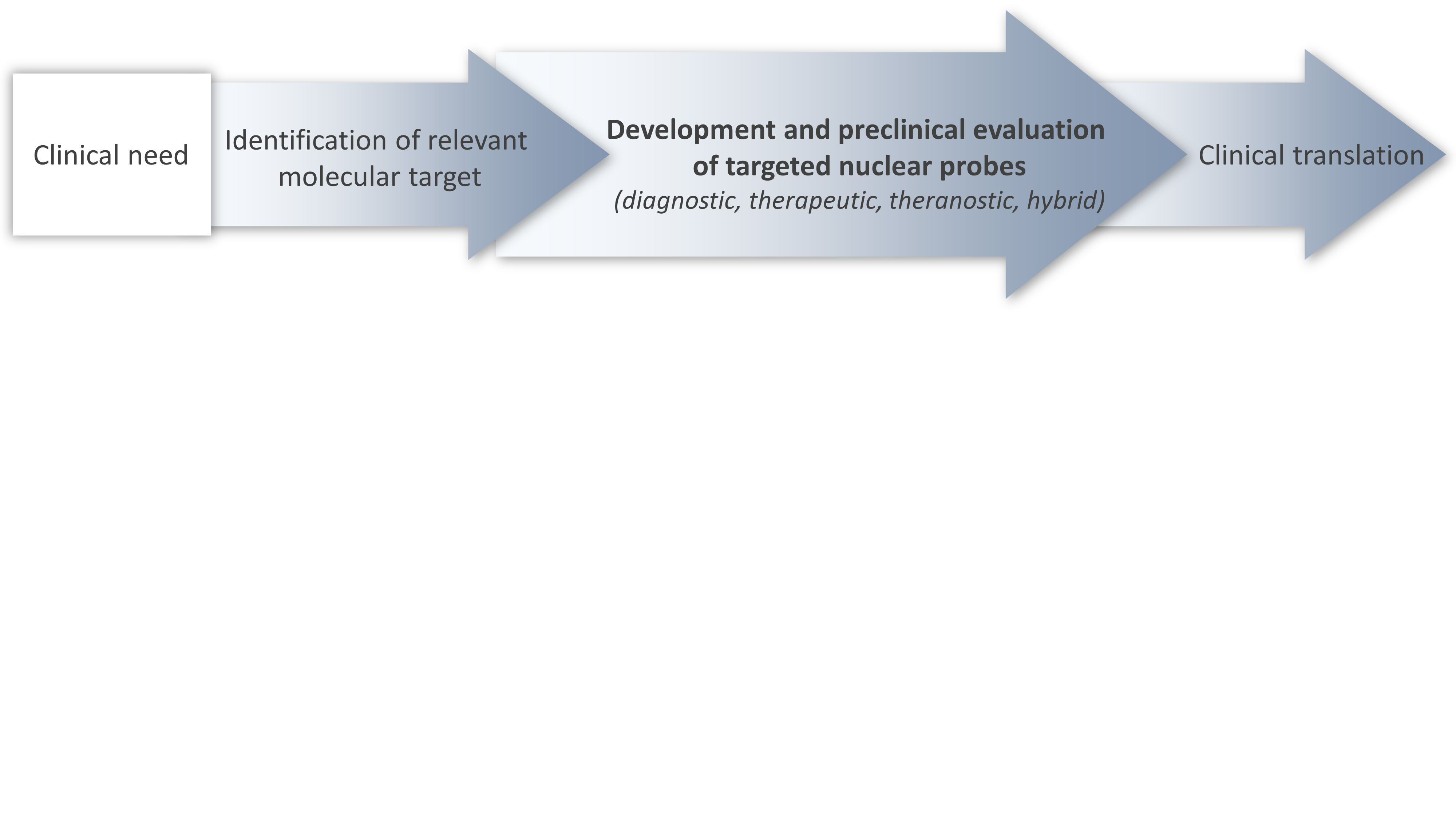 Our newly established research team (est. Sept. 2019) focuses on the design, synthesis and in-depth preclinical characterization of targeted probes for in vivo imaging and theranostic applications in the wider context of immuno-oncology. This includes the identification of novel targets for selective imaging of immune cell populations in the tumor microenvironment and subsequent tracer development and optimization. Also, further preclinical advancements of recently established theranostic concepts such as Chemokine receptor-targeted agents within the framework of immunotherapies and combination therapies is an integral part of our research interest. The overarching goal of these efforts is the development of imaging tools for improved patient selection in the context of immune therapies in different cancer entities.