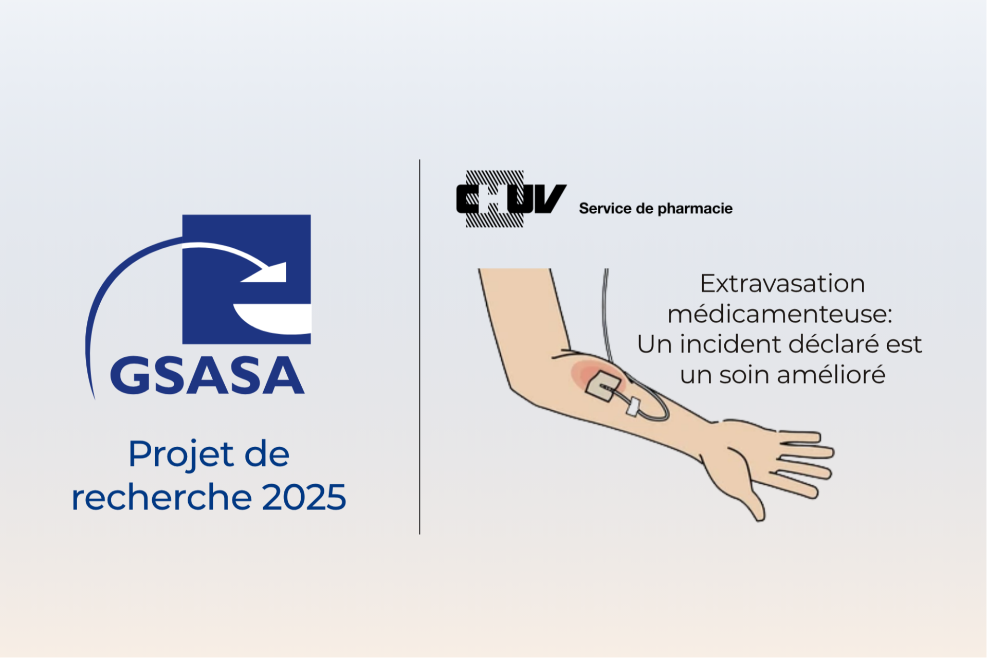 La GSASA a désigné le projet "Extravasation médicamenteuse : Un incident déclaré est un soin amélioré" de la Dre Ella Zabouo Pujol, pharmacienne clinicienne au CHUV, comme vainqueur de l’appel à projet de recherche d'ampleur national 2025.