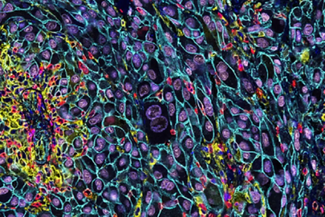 Pour comprendre comment les tumeurs se développent, progressent et/ou échappent à la réponse immunitaire, il est important d'examiner de près les différentes cellules qui composent leur environnement, comme les cellules immunitaires (lymphocytes T et B, les cellules dendritiques, les macrophages, les neutrophiles, etc.), mais aussi les cellules stromales et épithéliales autour des cellules cancéreuses elle-même. Pour ce faire, nous utilisons des méthodes qui permettent d'observer les molécules dans leur organisation spatiale révélant ainsi l’architecture de la tumeur et de son environnement avec une grande précision.
